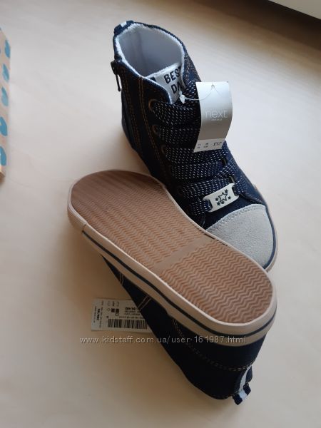 Фирменные кроссовки NEXT р-р29(18см)Оригинал-900грн--800грн!!! Распродажа!!! для детей. Благодаря текстильной поверхности модель особенно адаптируется. - Кружевная застежка с дополнительной молнией - нескользящая подошва Верх: текстиль Подкладка: Текстиль Стелька текстильная Подошва: Другой материал