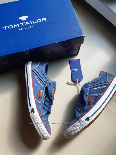 Фирменные Кроссовки Кеды Tom Tailor р-р32(20см)Оригинал-880грн --800грн!!! Распродажа!!! оснащены регулируемой шнуровкой и эластичным ремешком под языком. Джинсовый верх с отделкой из кожи создает повседневный образ. - усиленная пятка - мягкая стелька - гибкая подошва протектора с противоскользящим эффектом Верх: текстиль, другой материал Подкладка: Текстиль Стелька текстильная Подошва: Другой материал