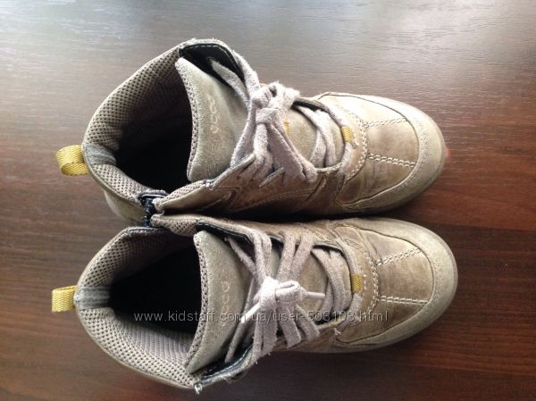 Детские полуботинки ECCO. Верх выполнен в сочетании из натуральной кожи и замши. Модель отлично держит форму, сбоку молния, объем регулируется шнуровкой. Текстильная подкладка впитывает лишнюю влагу, обеспечивая комфортный микроклимат. Стелька обеспечивает дополнительную амортизацию. Легкая гибкая комбинированная подошва. Размер 34, длинна стельки 22,5 смВнутри натуральный войлок, можно носить до -7