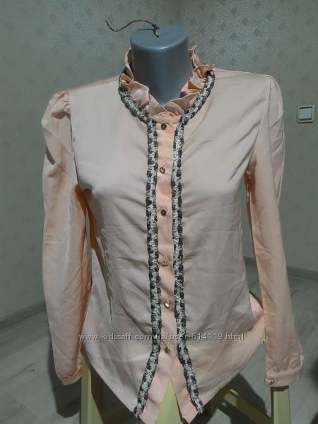 Нежная пудровая блуза от Goldie Estelle, по бирке XS/ большемерит Красивый воротник стоечка, застегивается на пуговицы, интересный декор передней части. Фурнитура золото. Очень элегантная и красивая блуза. На ощупь как шелк. Без бумажной бирки, осталась только пластик контролька.[ссылка удалена]
