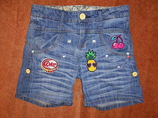 1. Бриджи в клетку, размер указан 9 лет - 134 см., маломерят, состав указан 100 % хлопок, есть люрексовая нитка, Турция. Замеры: ПОТ - 23 см., длина - 41 см., длина по внутреннему шву - 21 см. 35 грн.2. Модные, с нашивками, ТМ Garcia.