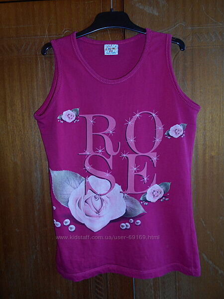 2. Топ малиновый с принтом, Турция, ТМ Cerenimo, хлопок, размер указан 134, 9 лет.