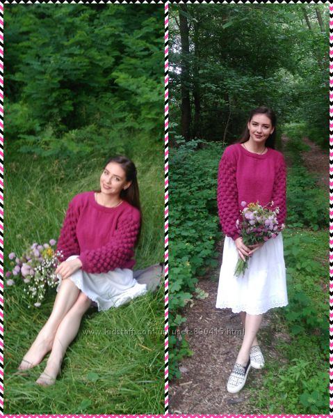 Подробное описание: Женский вязаный объёмный свитер джемпер кофта малинки, шишечки, шишки look