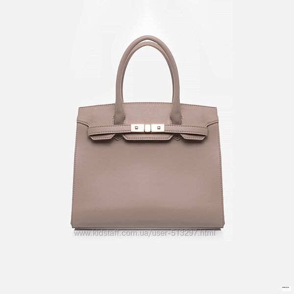 Сумку, з простим кроєм та мінімальним оздобленням, виконано з шкірозамінника високої якості, щоб її використання було максимально тривалим та приємним. Основна увага акцентується на гарній текстурі шкірзамінника ззовні, який з внутрішньої сторони має оригінальне покриття імітоване під велюр. Сумочка має дві короткі ручки, які розраховані на комфортне транспортування в руці. До комплекту входить довгий регульований ремінець. Задня стінка оснащена врізною кишенею на застібці. На дні встановлені металеві ніжки. Весь виріб зачиняється на блискавку.