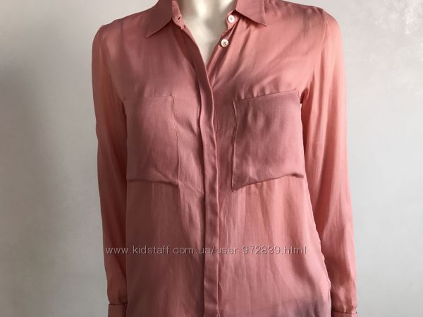 РУБАШКА, БАТНИК ИЗ ОЧЕНЬ ТОНЕНЬКОЙ БАТИСТОВОГО КАЧЕСТВА ТКАНИ АБСОЛЮТНО ЗАЖИТОЧНОГО ВИДА ) 76 % ВИСКОЗА , 24 % ШЁЛК ОЧЕНЬ КРАСИВЫЙ ПЕРСИКОВЫЙ ЦВЕТ ЗАСТЕЖКА СКРЫТА ПЛАНКОЙ, БОЛЬШИЕ НАКЛАДНЫЕ КАРМАНЫ между подмышками 50 см, длина 66.5 см, рукав 61.5 см МАНЕКЕН ОГ 86 СМ, ОТ 63 СМ, ОБ 94 СМ -