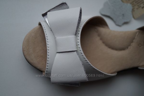 Новые белые нарядные кожаные туфли босоножки для девочки, ТМ « БЕРЕГИНЯ » Материал верха: натуральная кожа, внутри – натуральная кожа, кожаная ортопедическая стелька с супинатором. Впереди декорированы милым кожаным бантиком.Ножка фиксируется застежкой-липучкой
