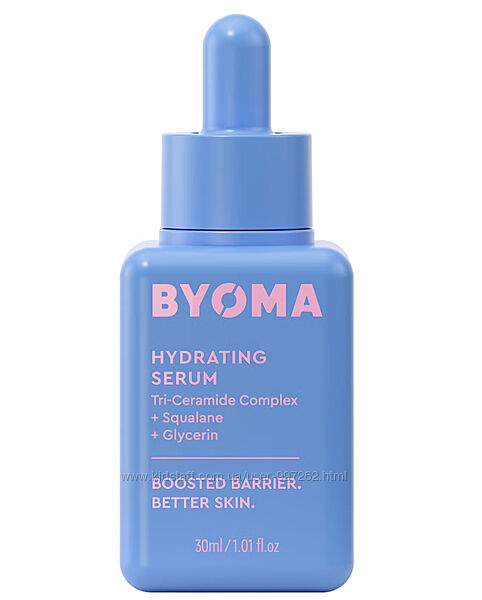 Ультралегка сироватка для обличчя Byoma Hydrating Serum збагачена зволожуючими компонентами, які роблять шкіру сяючою та зміцнюють її захисний бар´єр.