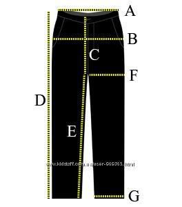 РАЗМЕР 33(1):Полуобхват талии-42.5 см. Полуобхват бёдер(Замеряю под ширинкой, под швом)-54 см. Посадка спереди-26.5 см. Посадка сзади-37 см. Длина бокового шва 59 см. Длина по внутреннему шву-34 см. Ширина штанины вверху(Бедро)-30.5 см. Ширина штанины внизу-22 см.