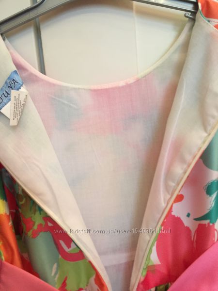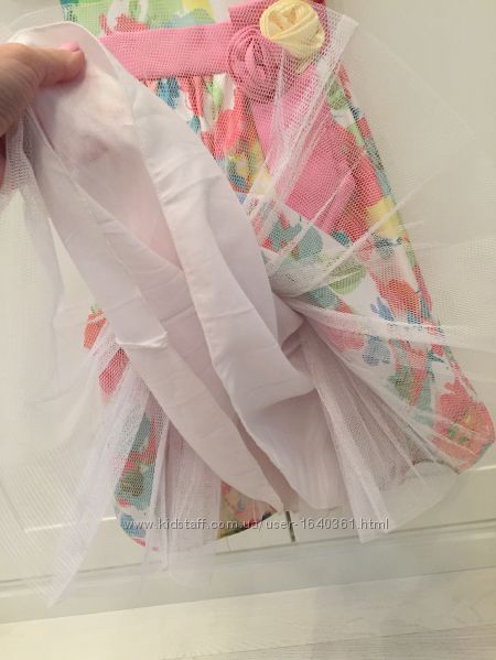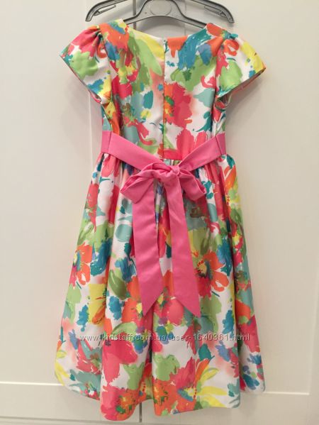 Нарядное платье для девочки. Ткань- 100% пэ (не тянется), подкладка -100% котон. На возраст 5-7 лет.Параметры- длина общая по спинке- 77,5 см, верх переда до подреза- 26 см, талия п/о- 32 см, талию можно регулировать бантом.