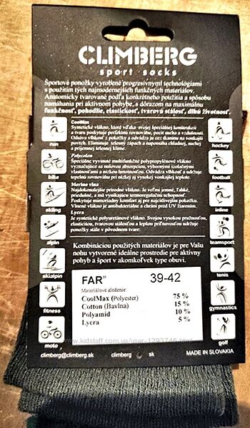 Подробное описание: потоотводящие носки coolmax Climberg Far