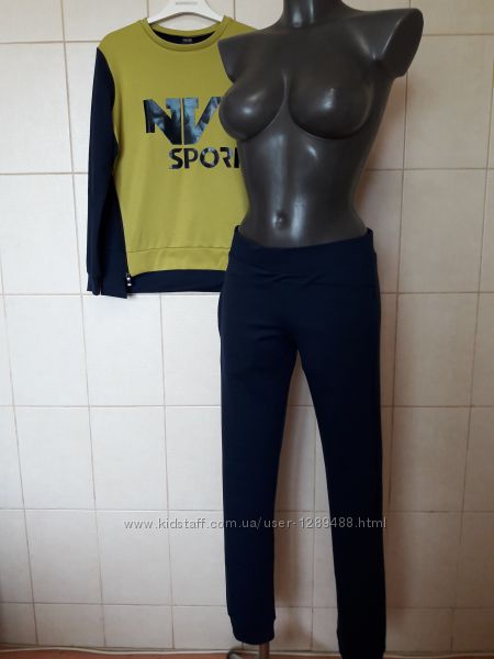 Свитшот декорирован молниями по бокам,длиной 25см,штаны с карманами