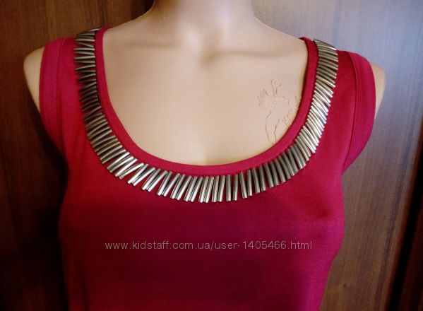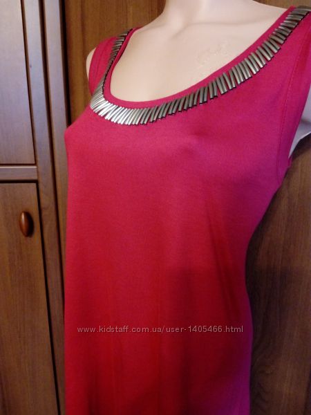 Летнее фирменное платье So Fabulous. Горловина украшена металлическими бусинами. Размер: наш 48Цвет: ярко-розовый