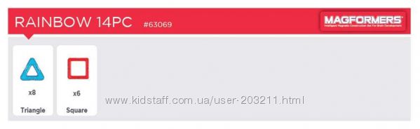 Только оригинальный товар!Магнитный конструктор Магформерс на 14 деталей Magformers Basic.