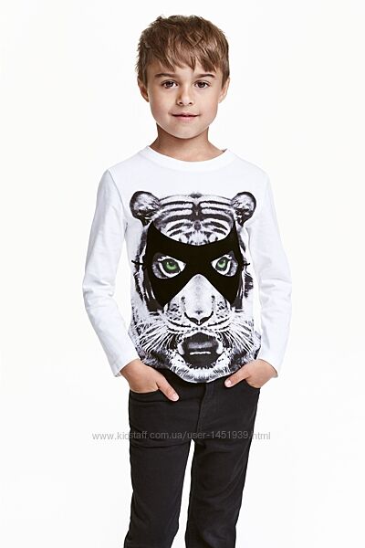 Подробное описание: H&M Белый реглан лонгслив с тигром мальчику