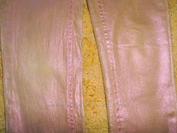 ф4. Розовые летние джинсы с напылением. Рост 140см, 99% котон, 1% эластан, в поясе утяжка длина 86, шаговый 66, пояс максимально 35, бедра 40, ширина штанины внизу 13, посадка спереди 20, посадка сзади 31. На коленках слегка стерлось напыление но не сильно заметно поэтому цена 50 грн.