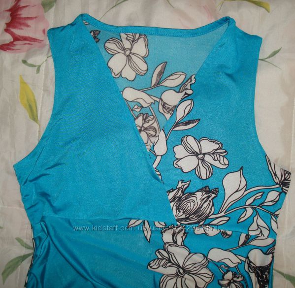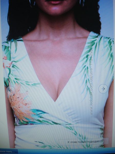 Трикотажное платьеЗамечательное трикотажное платье − очаровывает прекрасными летними расцветками! V-образный вырез формирует красивое декольте , а цветочный принт создает летнее настроение и отводит внимание от проблемных зон. Истинное очарование! Длина ок. 90 см (разм. 36/38).состав: 95% полиэстер, 5% эластан брала размер 36 на наш укр.44 идет на ОГ-82-85см ОТ-66-69см ОБ-92-95см, но ориентируйтесь еще и по замерам: