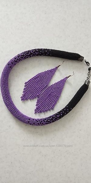 Подробное описание: Комплект фиолетовое сияние - жгут и сережки