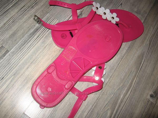 Силиконовые яркие босоножечки (обуты 1 раз) размер 34,по стельке от края до края 22,5см,до возвышения на пяточке 22см,длина от носка до начала перепонки 3,5см.Покупали за 350грн,отдаю за 280грн