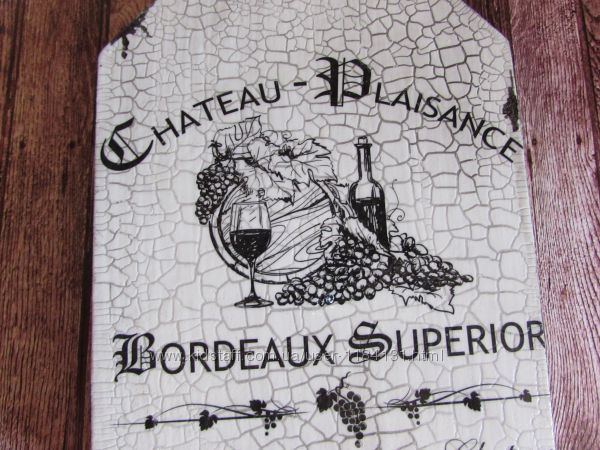 Доска декорирована в технике вживления картинки ,крекелюр.На досочке можно не только резать ,но и подавать бутерброды,фрукты,сладости и т.д.