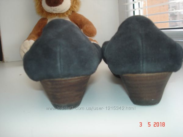 Фирменное немецкое качество, натуральная замша чёрного цвета, устойчивый каблучок 4 см, состояние без замечаний.Длина стельки 24,5 , на стандартную полноту(8,5 см), указан размер 38.