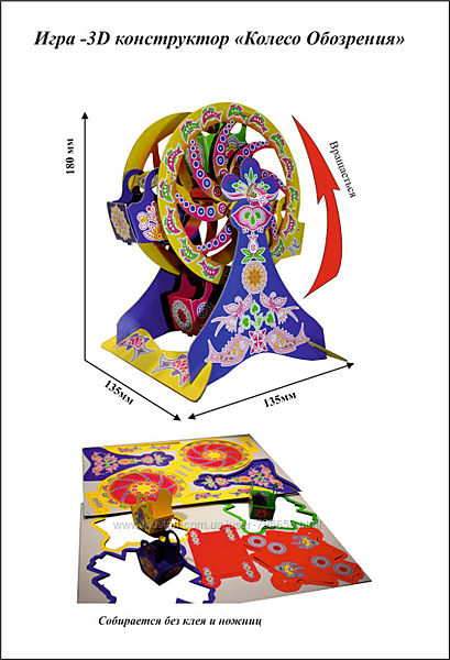Модель 3Д конструктор «Колесо Обозрения»В сложенном виде представляет собой книгу размерами 230х324х5мм.