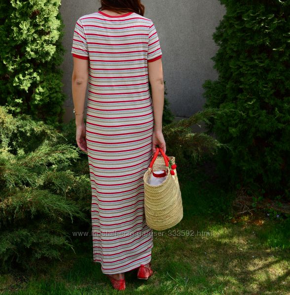 Подробное описание: Длинное трикотажное платье в полоску с разрезами, Италия, скидка