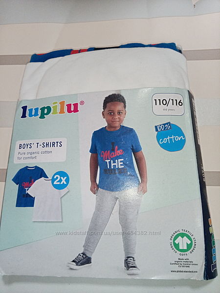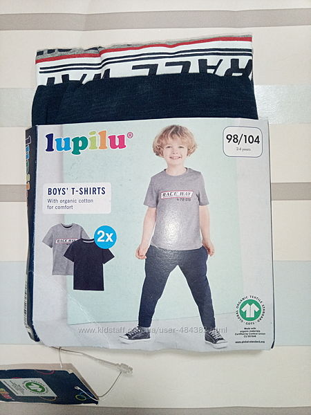 Футболки для малюків тм Lupilu. 1-100% котон, 2- 90% котон, 10% віскоза. Розміри 98/104, 110/116. Ціна 80 грн/шт. Продаються упаковкою з 2х штук.