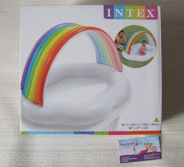 ФОТО 1-3. Детский бассейн Облако с радугой Intex 57141 станет любимой игрушкой вашего ребенка. Бассейн подходит для водных развлечений и игр с учетом возрастных особенностей ребенка. В бассейне малыш может купаться, весело проводить время с родителями и с друзьями. Бассейн предназначен для детей в возрасте от года до трех лет.Бассейн прост и удобен в эксплуатации, не занимает много места, выполнен в стильном дизайне в виде навесной радуги из высококачественного ПВХ.