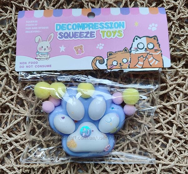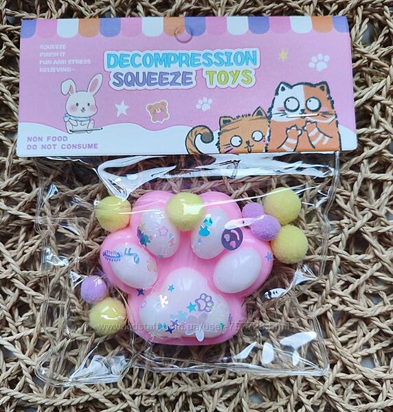Подробное описание: Сквіші таба лапка з присипкою та помпонами, іграшка антистрес, котяча лапка