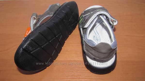 Распродажа!Новые с натуральной кожи босоножки с черной подошвой босоножки для мальчика. Серого цвета с салатовыми вставочками. На трех липучках. Легкие и удобные. Прошиты по бокам. Подошва похожая не пенку, не утяжеляет обувь.По описанию: