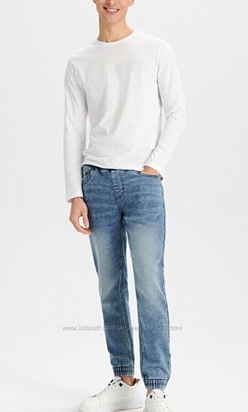 Підліткові джинсові джогери для хлопчика від Sinsay. Розмір 28, гарно сядуть на р. 164-170. Колір блакитний.Тканина середньої щільності.Довжина 93 см, кроковий 70 см, ширина в стегнах 51 см, ширина в талії не розтягуючи 37 см, тягнеться до 45 см. Тканина сама по собі трохи тягнеться.