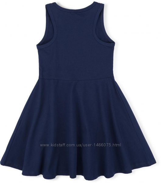 Платье без рукавов, отрезное по линии талии. Верх маечного типа, спинка-борцовка – не очень узкая, в районе лопаток ширина 15 см. Проймы и горловина обработаны эластичной бейкой из такого же трикотажа. Трикотаж средней плотности, не просвещается. Юбка платья – четверть солнца, спадает красивыми фалдами.