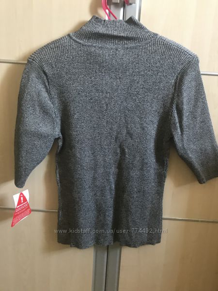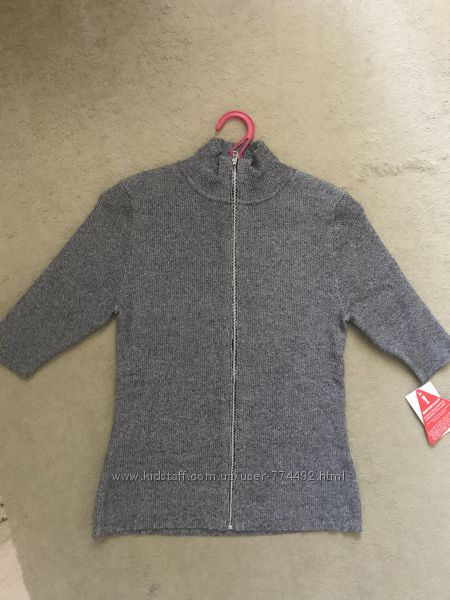 Универсальный базовый топ кофта серого цвета на молнии. Размер 10 на наш S-M. Оооочень хорошо тянется, по типу резинки, но мне на Xs чуть великовата. В спокойном состоянии замеры длина от плеча 54 см, ширина 35-36 см, плечи 33 см, рукав 31 см.Другие объявления продавца