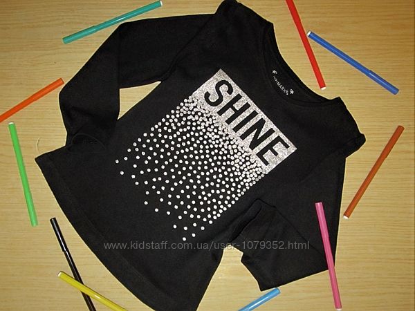 Футболка CHINE Primark для девочки 4-5 лет(рост 110 см) с длинным рукавом,приталенная,с закругленными краями. Состав: 100% cotton Цвет: черный,накат серебряные блестки Производство: Индия Замеры: ПОГ - 32 см ширина плеч - 25 см длина - 40 см Доставка:Новой почтой,Укрпочтой Оплата: 100% на карт-счет Обмен,возврат: не предусмотрен Смотрите другие мои объявления!