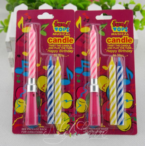 Свеча для торта музыкальная с подставкой и 2 запасными свечами. При повороте вправо подставки, свеча начинает играть, если Вы хотите ее выключить поверните подставку влево. В свече играет песня "Happy Birthday to You". Подставка многоразовая. Есть возможность использовать повторно, заменив свечу.В наборе: 1 подставка и 3 свечки. Длина свечки 7 см, диаметр 8 ммПересылаю Укрпочтой или Новой почтой после 100% предоплаты на карточку Приватбанка