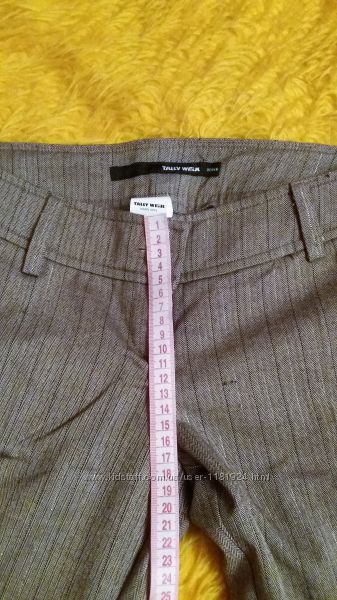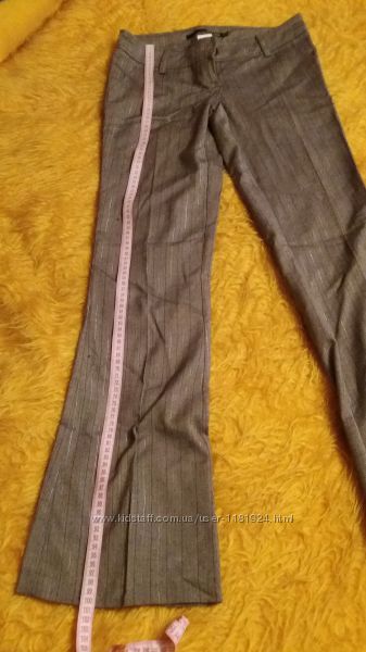 Шикарные фирменный брюки - смотрятся очень модно - заниженная талия, немного струятся вниз, с легким эффектом мокрой ткани - не светлый бежевый цвет с тонюсенькой люрексовой ниткой (одна из полосочек).Ткань тонкая костюмная - елочка и 2 вида полосок - за счет этого очень легко комбинировать с одеждой.