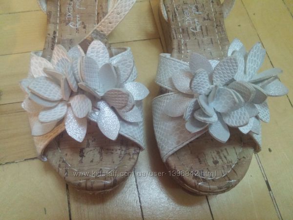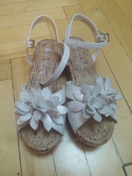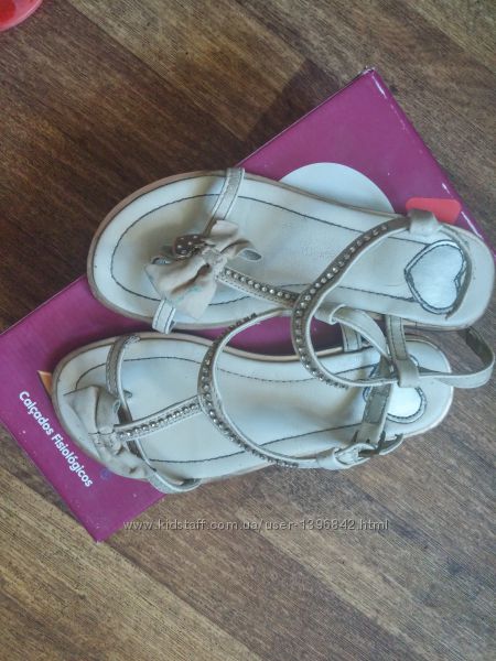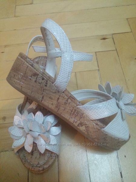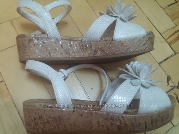 Красивый белый цвет с серебрянным блеском,кожзам хорошего качества-как и все Некст. по стельке 21 см.Обувались всего 2-3 раза-но на подошве есть небольшой дефект-немного подертость-см. предпоследнее фото,при носке конечно не видно.В остальном состояние как новые. очень красиво смотрятся.Покупались за 20 фунтов на английском сайте. Босоножки Bibi kids(Америка)со стразами б.у. 32 размер по стельке 20,5 см. 90грн.