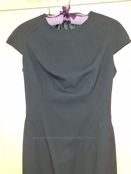 Э легантное и стильное платье по фигуре, подкладка до талии. Интересный крой выточек, сзади молния и разрез. Размер указан S. Состояние идеальное. Состав ткани: 65 % - polyester, 31 % - Viscosa, 3 % - ElastanЗамеры: общая длина - 96 см, полуобъём по груди - 44 см, талия полуобъём - 32 см, полуобъём бедер - 44 см, длина рукава от горловины - 20 см, разрез - 18 см, ткань немного тянется, все замеры в не растянутом виде. Носила при объёме груди 84 см, бёдра +/-95 см