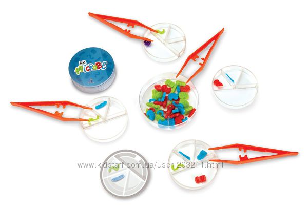Блестящая карьера учёного. Быстрая и весёлая настольная игра Доктор Микроб (Dr. Microbe) придётся по душе и детям, и взрослым. Она одновременно тренирует логику, внимание и ловкость рук: ведь подцепить микроба пинцетом - нетривиальная задача даже для опытных учёных! =)) Наигравшись по классическим правилам, можно разнообразить вашу игру, освоив её более сложные варианты: подкладывайте в чашки Петри соперников зловредный фиолетовый вирус или других микробов, а может и то и другое вместе! Выполняйте задания доктора Микроба - и пусть Нобелевскую премию получит самый быстрый!