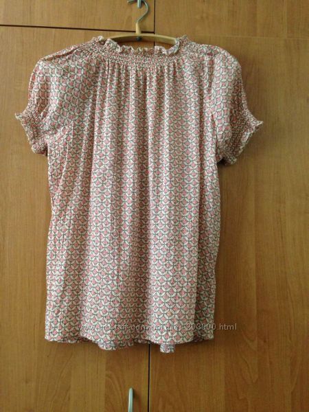 Очень нежная, легкая, свободная блузка. Хлопок 100%, ткань «жатка», не требует глажки. Рукав фонарик, хороший вырез , красивая расцветка. В идеальном состоянии. Размер L. Мерки: в груди 114см, в талии 114, по низу 120см. Длина 62см.