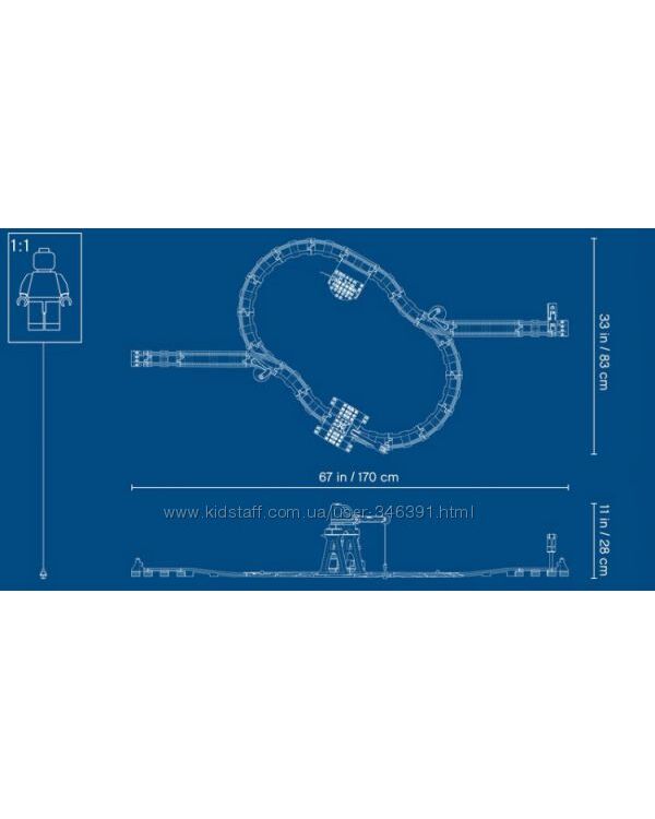 - овальную железную дорогу, состоящую из 24 элементов: 14 закруглённых рельсов, 2 прямых участка, 2 наклонных участка, переезд, 2 стрелки, 2 депо и прямые рельсы, соединённые со станцией