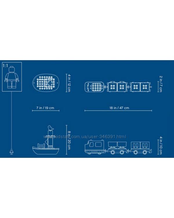 Разветвлённая железная дорога и вместительный грузовой поезд помогут улучшить инфраструктуру Лего-города. Быстрое сообщение между станциями значительно упростит работу всех жителей. Рыбакам не придётся долго ждать в порту, опасаясь за свежесть своего улова. Цепкий кран мигом разгрузит их суда, а поезд займётся транспортировкой.