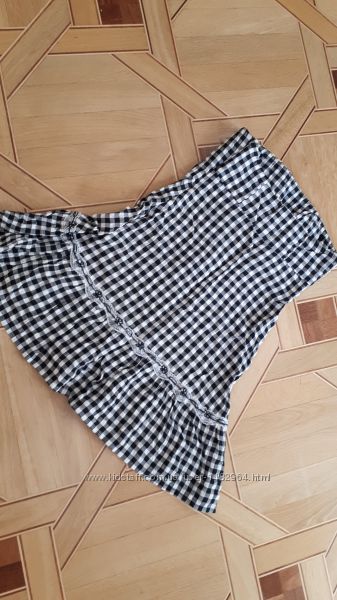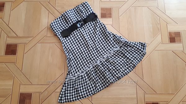 Подробное описание: Платье с открытыми плечами Rebecca Blue в клеточку, размер L, лаковый пояс,