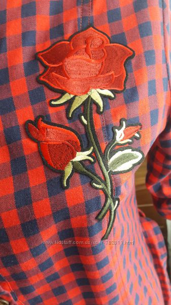 Подробное описание: Платье в клетку с вышивкой роза