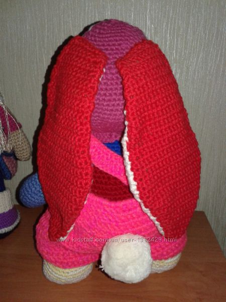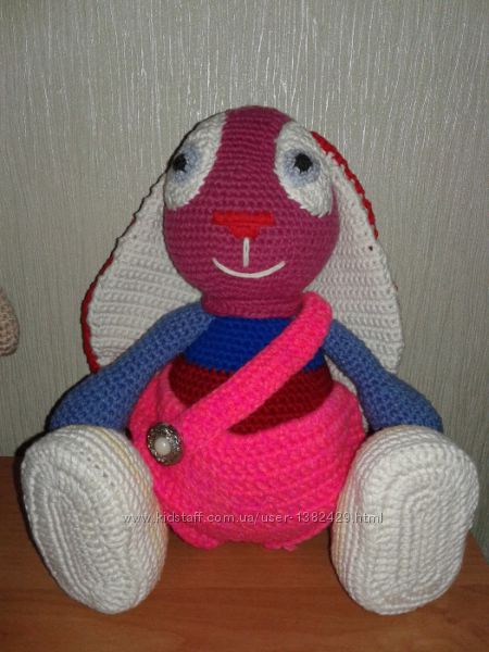 Новая игрушка амигуруми"Веселый зайка"связаный крючком,из качественных новых ниток,материал приятный к телу,качественный.Высоты игрушки 34см,ширина 20см.Ножки у игрушки двигаются.Другие объявления продавца