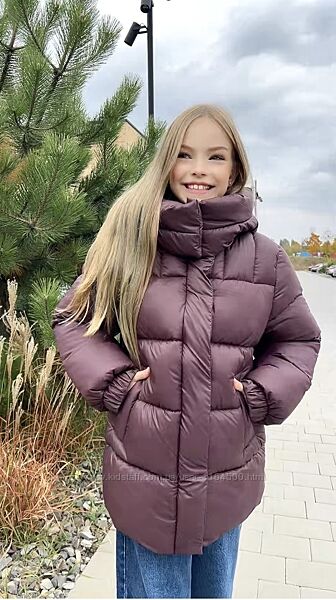 Підліткова зимова куртка для дівчинки. Наповнювач еко-пух. Застібається куртка на блискавку. Блискавка прикрита вітрозахисною планкою. Комір стійка закриває шию від холоду. Каптур має щільний шар наповнювача, за рахунок якого каптур може замінити шапку. Низ куртки має утяжки. У рукавах є резиночки. Спереду дві кишені. Куртка підходить на холодну зиму.Заміри: