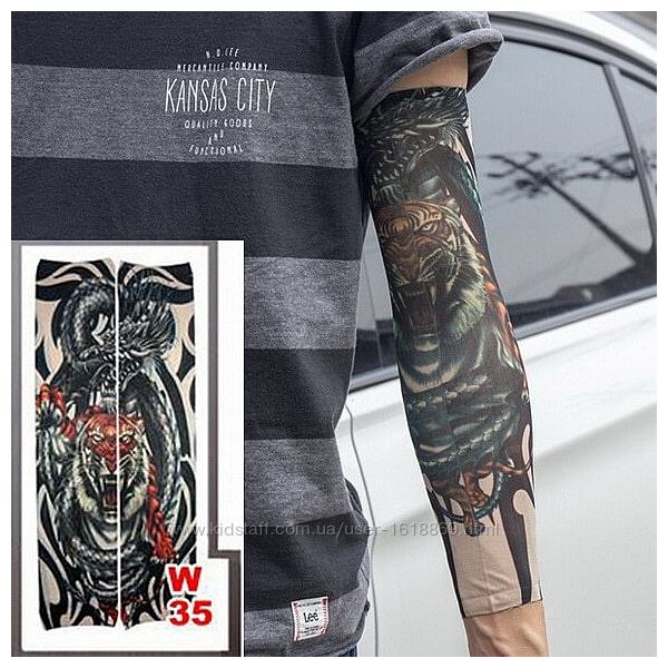 Рукава тату съемные длиной 38 см. Хорошо тянутся и принимают форму руки.Нарукавники тату не только помогут создать неповторимый стиль, но и защитят руки от солнечного излучения, а в более холодное время года согреют.
