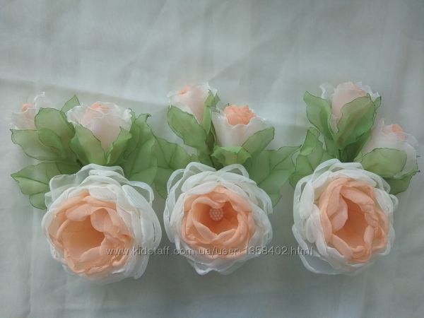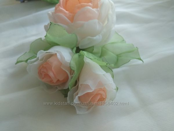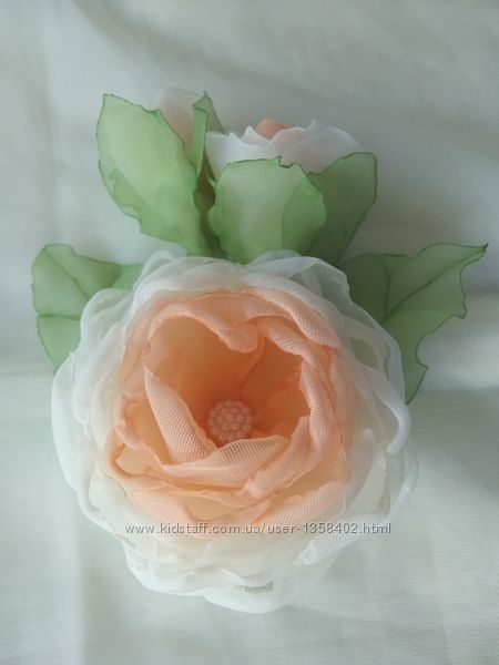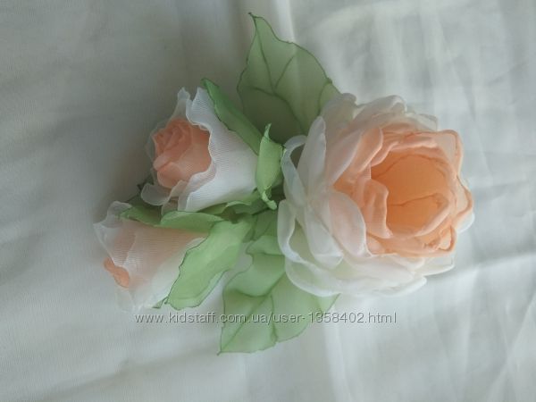 Подробное описание: Нежная заколка ручной работы, цветы из шифона и атласных лент