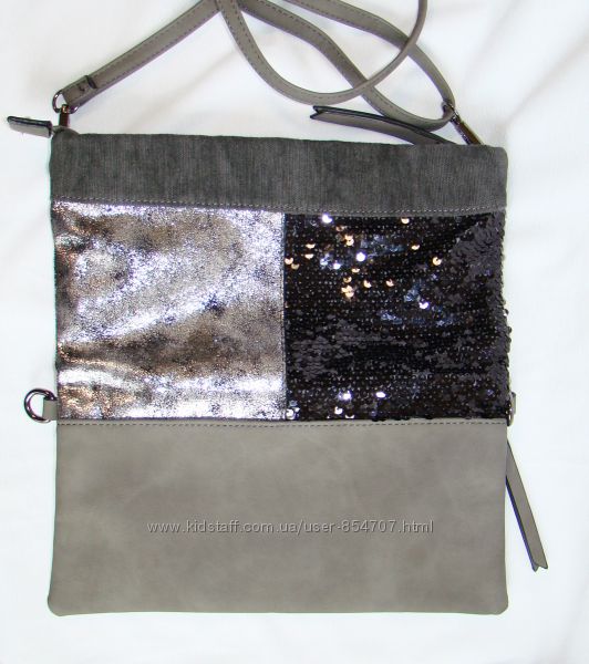 Сумка клатч Emily & NoahИзготовлен из комбинированного материала - эко-кожа, текстиль, материал с паетками (паетки-перевертыши, поворачиваются вверх и вниз).