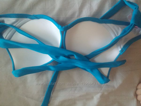 Ультра-модный знойный купальник Виктория Сикрет с потрясающе выразительным пуш-апом. Яркий бирюзовый цвет подчеркнёт красоту вашей кожи. Завершающий штрих этого безупречного топа - завязки сзади крест накрест.Завязки за спиной.Пуш-ап чашечки на супер-мягкой подкладке